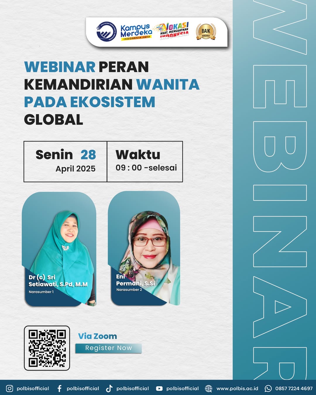Selain Kegiatan diatas, POLBIS juga mengadakan Webinar Inspiratif untuk merayakan semangat perempuan Indonesia dengan tema “Peran Kemandirian Wanita pada Ekosistem Global
